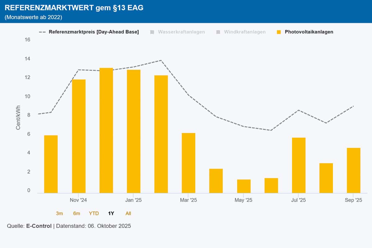 Der monatliche Abnahmepreis orientiert sich am aktuellen Referenzmarktwert der E-Control und wird nach folgender Berechnungsformel jeweils zu Beginn des Folgemonats im Nachhinein festgelegt: